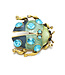 - Luxe Uitstraling: Het goudkleurige metaal vormt een prachtig contrast met de frisse blauwe kristallen en het zachte turqoise en lichtgroene emaille.
