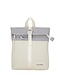 Deze trendy waterafstotende rugtas draagt comfortabel door het lichtgewicht en de gewatteerde schouderbanden. Toch behoudt deze rugzak zijn charme door de fijne vormgeving. Het hoofdvak is eenvoudig te vergroten of verkleinen door het oprol gedeelte aan de bovenkant. Hierdoor kun je tot 10 cm meer ruimte creëren. Het hoofdvak is afsluitbaar met een stevige rits en een gespsluiting die als een zwarte strook doorloopt in het design. In het zilverkleurige hoofdvak zitten twee insteekvakjes en een ritsvakje voor bijvoorbeeld je telefoon. Op de voorkant en achterkant van de rugzak zit ook een extra ritsvak, handig voor kleine spullen waar je snel bij moet kunnen. Het stevige handvat zorgt ervoor dat de tas eenvoudig op te pakken en op te hangen is.