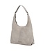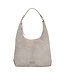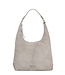 Stijlvolle schoudertas van suède met zilverkleurige details. De VIENNA SHOULDER HOBO suede van BURK..